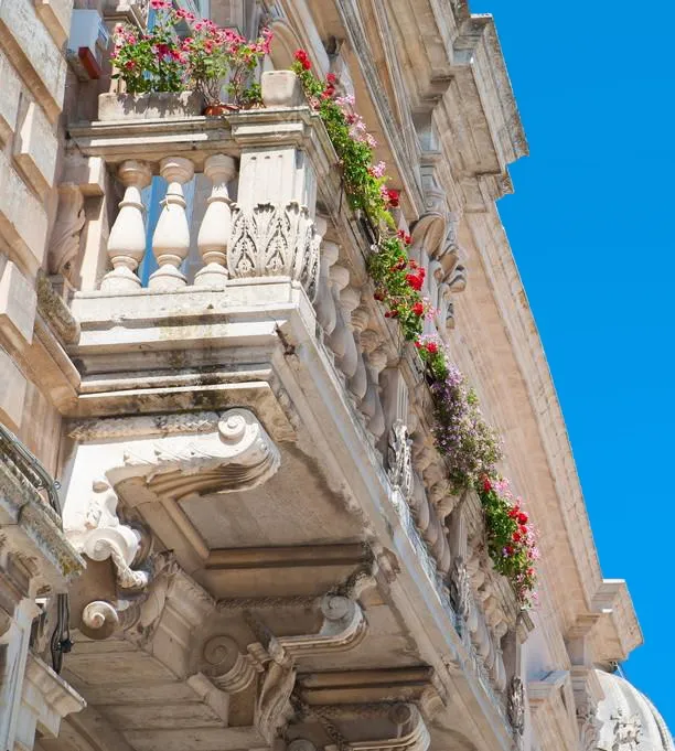 Динамичные и насыщенные детали в стиле барокко: балкон, портал. Город Рагуза, Сицилия.
