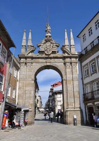Парадные городские ворота в стиле барокко. Пышная и насыщенная композиция - герб над входом, обелиски, разорванный фронтон.
