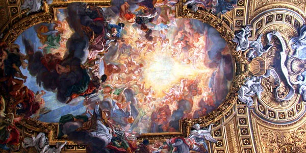Понять стиль барокко можно еще лучше, если рассмотреть скульптуру и живопись этого времени. Отличный пример - потолок церкви Иль Джезу.